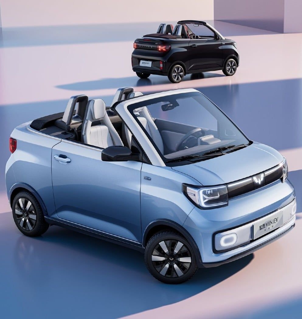 Наконец-то появился долгожданный Wuling Mini EV Cabrio. Это, наверное, самая крутая китайская машина года, а может, и десятилетия. Wuling заслуживает большой похвалы за смелость и дальновидность, чтобы вывести на рынок такой автомобиль. Wuling предназначен для молодых людей, живущих в солнечных местах. В нем всего два места по сравнению с четырехместной версией хэтчбека . Но за потерю дополнительного пространства вы получаете трансформируемую мягкую крышу, которая полностью убирается в багажник. За сиденьями есть дуги безопасности для дополнительной защиты, и они тоже выглядят круто. EV Cabrio выпускается только в трех цветах: морской синий, изумрудный и современный черный. Позже Wuling добавит дополнительные цвета. Передняя стойка окрашена в серый матовый цвет. Кабриолетная крыша стандартно черная или опционально красная. Это отличный дизайн, позволяющий без проблем перейти с хэтчбека на кабриолет. Кажется, что Mini EV с самого начала разрабатывался как кабриолет. Wuling Mini EV Cabri