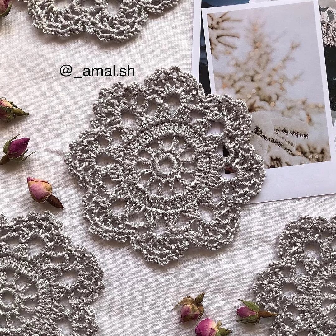Схемы небольших мотивов для крючка -это находка для тренервки навыков вязания и чтения схем. Таких небольших салфеток можно свящать много и составить из них полноценное изделие. Готовый мотив можно использовать как подставку под кружку Если вам понравилась эта статья оставьте свой комментарий. Магазин пряжи ВЯЗАНЫЙ.РФ