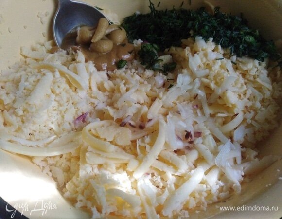 зелень - 1по вкусу Шаг: 1 Натертый на крупной терке сыр соединить с горчицей, зеленью и чесноком. Перемешать. Шаг: 2 Репчатый лук обжарить, добавить в фарш с солью и перцем. Перемешать. Шаг: 3 Сформировать котлеты, выложить на противень. Сделать углубление. Шаг: 4 Наполнить сырной массой. Поставить в разогретую духовку. Запекать при 190°C 30 минут. Шаг: 5 Приятного аппетита!