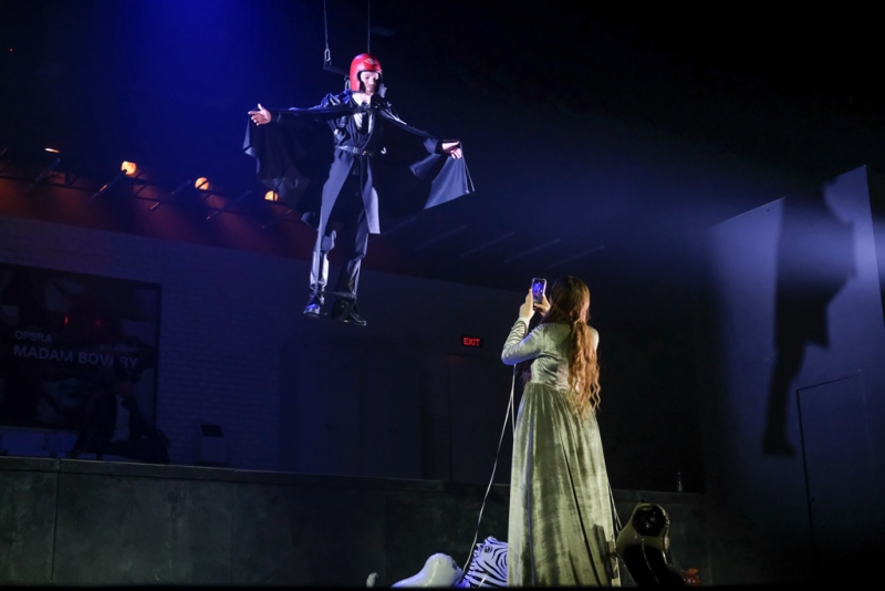 Шоу/спектакль начинается именно с эффектного появления Фру-фру с микрофоном на стойке, в который грациозная кобыла возвещает о предстоящем зрителям удовольствии. Финал же, как и полагается по сюжету, скорбный: несчастная, измученная, настрадавшаяся и опустошённая Анна не бросается под поезд и вообще не делает резких телодвижений. На Каренину вновь надевают клоунский нос, вдобавок – светящиеся красные вампирские очки-глаза, в руку вкладывают связку фольгированных праздничных шариков и в этом «прикиде» она медленно опускается под сцену, как в преисподнюю. Кто-то высказал предположение, что такая участь ждёт всех пристрастившихся к морфию…
