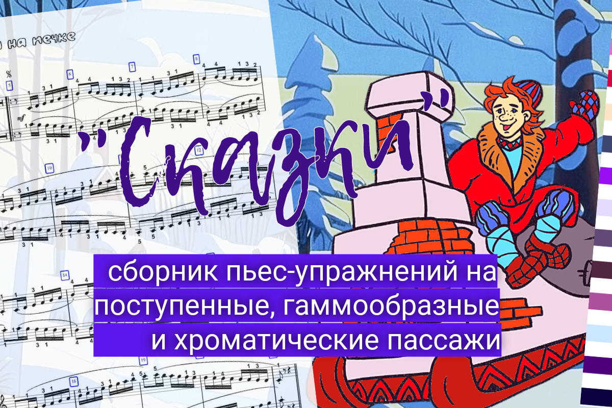 Но все остальные должны иметь в программе хотя бы несколько пьес, которые они могут разобрать и выучить текст на одном - трёх уроках, ну или совсем немного больше. Но в то же время эти пьесы не должны быть технически простыми, иначе толку не будет, и мы уйдём в упрощение программы, а нам нельзя этого допускать. Поэтому мы используем пьесы-упражнения. Можно познакомиться с ними на примере сборника "Сказки", фрагменты которого представлены в видео.