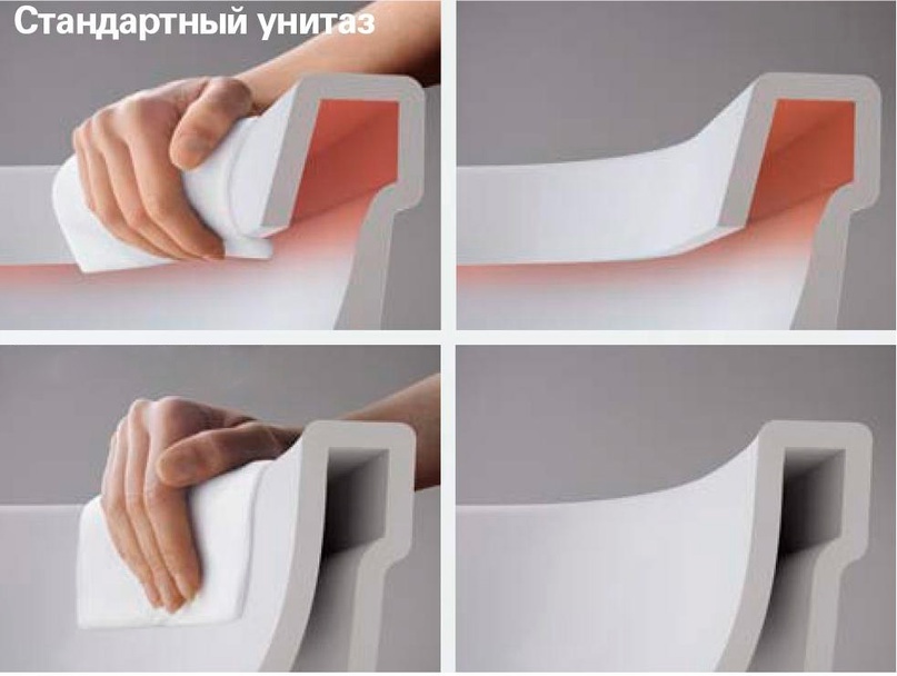 Гигиеничность — важное требование, которое должно соблюдаться при обустройстве уборной. Особое внимание ему следует уделить при выборе сантехники. Современные производители различными способами стремятся добиться максимальной гигиеничности унитазов. Помимо использования покрытий с антибактериальным действием или систем смыва с повышенной эффективностью серьезную роль в этом играет конструкция сантехники. Принцип работы Унитаз без ободка — конструкция, которая отличается простотой и эффективностью эксплуатации: · поверхность сантехники без скрытых областей активно омывается сильным напором воды после нажатия на кнопку смыва; · поток равномерно распределяется по внутренней поверхности чаши без лишних брызг; · уникальная конструкция предотвращает появление воды на полу уборной, что позволяет использовать для отделки разнообразные материалы с любой степенью влагоустойчивости. Как при отсутствии ободка удается добиться сухости и чистоты? Такие модели оснащены специальными рассеивателями ил