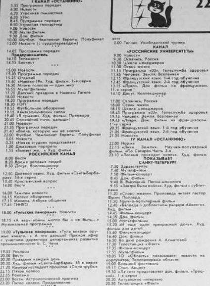 А вот Россия, перестала деградировать, и даже...наоборот?: почти весь день показывала в-ный советский фильм. Здорово. Ну а потом, с*пля, новости, спокушки...всё как обычно. Лично мне программа понравилась, твёрдая четверка с плюсом.