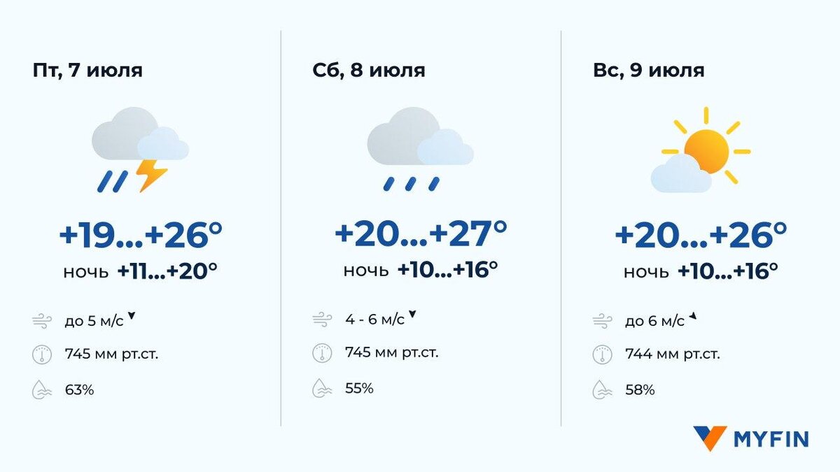 Myfin.by запустил новый удобный сервис оплаты товаров и услуг картами Халва. С его помощью проводи оплату продавцу напрямую, даже если он ремесленник или самозанятый!7 июля, в пятницу, по данным Белгидромета, ночью на большей части территории страны, днем преимущественно по восточной половине республики пройдут дожди, местами ожидаются сильные дожди, грозы. Ветер северный, северо-западный умеренный, местами порывистый. Температура воздуха минимальная ночью будет колебаться от +11°С по северо-западу до +20°С по юго-востоку; максимальная днем составит +19..+26°С, местами воздух прогреется до +28°С.8 июля, в субботу, местами по Беларуси пройдут кратковременные дожди, днем возможны грозы. Ветер северной четверти умеренный, местами порывистый. Температура воздуха минимальная ночью составит +10..+16°С, местами по востоку поднимется до +18°С, максимальная днем будет колебаться в пределах +20..+27°С.9 июля, в воскресенье, в основном без осадков, только днем местами по северо-западу республики