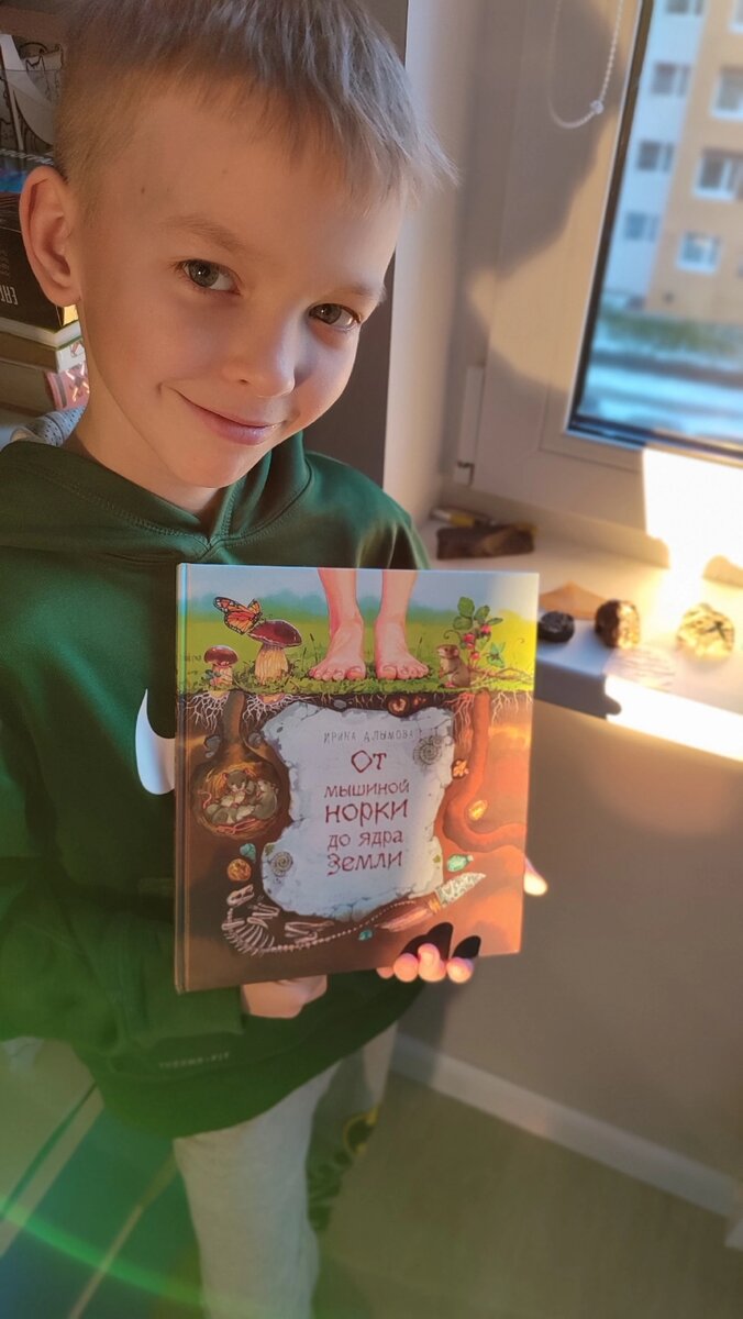 Еще зимой сын принял впервые участие в конкурсе "Возьми и читай" .🤓 Текст придумали вместе с сыном📝 "Привет друзья.Хочу рассказать вам о любимой книжке- 📙"От мышиной норки до ядра земли" ✍️Писатель Ирина Алымова 🏫Издательство- Издательство Добрый Великан - детские книги 🧐Год издания 2021 Я часто её перечитываю, там хорошие стихи. А самое главное — люблю рассматривать картинки, они очень интересные.🤩 В ней рассказывается, какие минералы и полезные ископаемые можно найти в земле. Под нашими ногами много чего интересного!!!🧐 А вы знали, что в толще земли можно отыскать стоянки древних людей, руины городов или, например, скелет динозавра? В книжке соединены любовь к нашей планете, радость приключений и новых открытий! Книжка ассоциируется с моей коллекцией камней.😊 У меня большая коллекция камней, на фото всего лишь малая часть, а именно последние экземпляры из музея геологии. Я бы хотел стать геологом или палеонтологом. 👀 Мама говорит, у меня дар на поиски. Я часто что-то