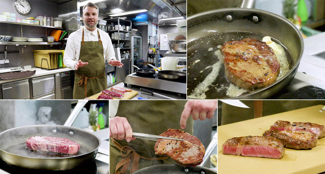 ПОДРОБНАЯ ВИДЕОИНСТРУКЦИЯ МЯСНИКА ПАВЛА ПОЦЕЛУЕВА, ОТВЕЧАЮЩАЯ НА ВСЕ САМЫЕ ВАЖНЫЕ ВОПРОСЫ Приготовление стейка — не самодеятельность. Для того чтобы стейк раскрыл весь заложенный в нем потенциал, требуется почти математический расчет. Казалось бы, так даже проще, надо только найти точный рецепт. Но тут и начинается самое интересное: стоит залезть в интернет, как оттуда сыпется масса подробностей. В одних только методах членения мясной туши легко потеряться: чем вообще отличаются стриплойн и сирлойна, а рибай от пеканьи (кстати, об этом можно подробно почитать в этом материале) и как с ними правильно обращаться? Выстроить из часто противоречивой информации стройную систему действий мало у кого получается. Самый надежный путь — найти профессионала, который может рассказать и показать весь процесс от и до. Мы выбрали Павла Поцелуева — мясника со стажем, популяризатора культуры потребления мяса, бренд-шефа одного из лучших московских мясных ресторанов «Жажда крови». Он приготовил не одну т