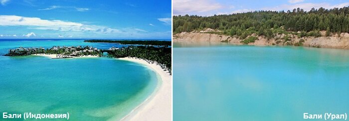 На Урале есть свое Бали. Оно находится близ города Кыштым в Челябинской области. Так прозвали озеро на месте бывшего каолинового карьера, отличающееся водой необычного лазурного цвета. Озеро образовалось на месте каолинового карьера (что такое каолин смотрите ниже). От других карьерных озер, которых много на Урале, отличается необыкновенным лазурным цветом воды и светлыми берегами. Этот карьер начали разрабатывать в 1940-е годы. Сейчас добыча переместилась на другие участки. О промышленной разработке напоминает одиноко стоящий столб, торчащий из воды прямо посреди озера. До недавнего времени воду из карьера откачивали. В 2011 году местные уголовники срезали провода ради цветного металла. Карьер быстро наполнился водой. Так что Кыштымское Бали совсем молодое. Еще несколько лет назад его не существовало. Благодаря соцсетям, слава о появившемся на Южном Урале озере с водой необычного цвета широко разошлась. Сюда потянулись любопытные туристы. Летом тут немало отдыхающих. Многие купаются,