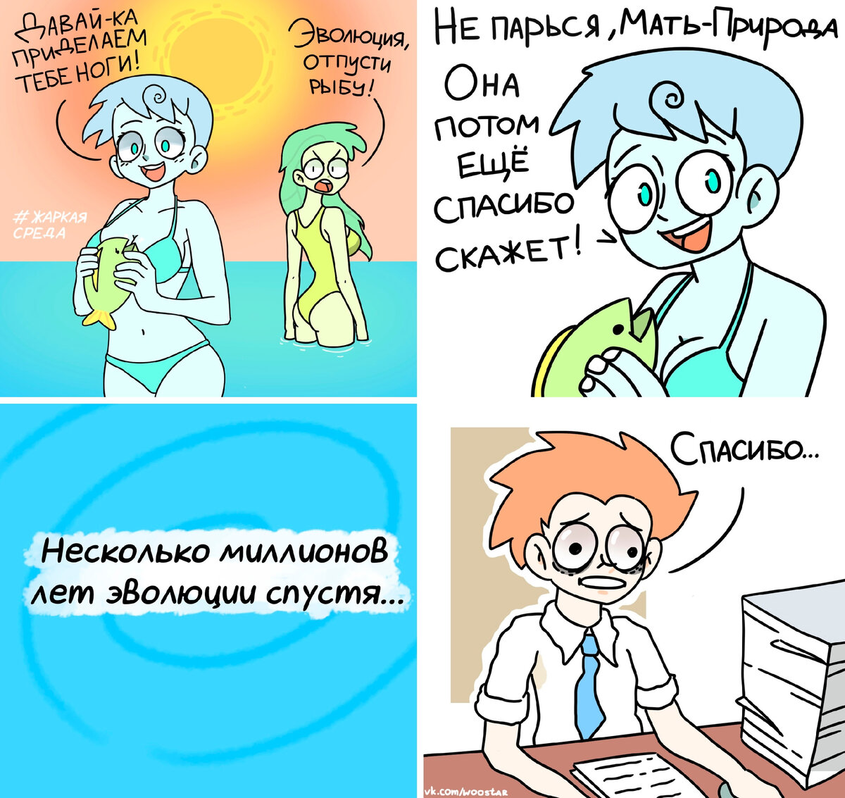 5 июля 2023 года в соцсети ВКонтакте под хэштегом #жаркаясреда стартовал летний челлендж, устроенный художниками комиксов. Суть челленджа была довольно проста - каждую среду июля нужно было выкладывать комиксы и иллюстрации в летнем сеттинге на определенные темы. В итоге в «Жаркой среде» поучаствовало около 20 художников и было нарисовано порядка 50 работ. Изначально кроме анонсов в некоторых группах никакой информации о челлендже «Жаркая среда» не было. А все потому, что эта активность была придумана в узком кругу художников и художниц, которые когда-то давно устраивали интерактив #1theme_comics (это когда рисовались комиксы на одну тему, а подписчики эту тему угадывали). В общем, «Жаркая среда» задумывалась как челлендж «для своих» - друзьям-художникам хотелось немного развлечься, поделать летнего контента, а заодно и привлечь аудиторию. Но после старта челленджа многие стали спрашивать, что это за хэштег такой и где можно узнать темы на следующие недели. Так что было принято решени