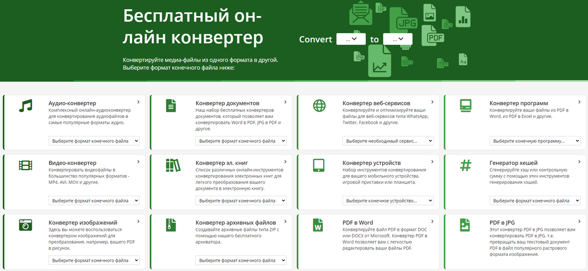 Универсальный бесплатный конвертер, который позволяет перегонять различные типы файлов. Независимо от того, требуется ли вам преобразование изображений в текст, PDF в Word или конвертация аудио и видео форматов, вы больше не нуждаетесь в поиске отдельных сайтов для каждой конкретной задачи. Весь функционал доступен в одном месте.