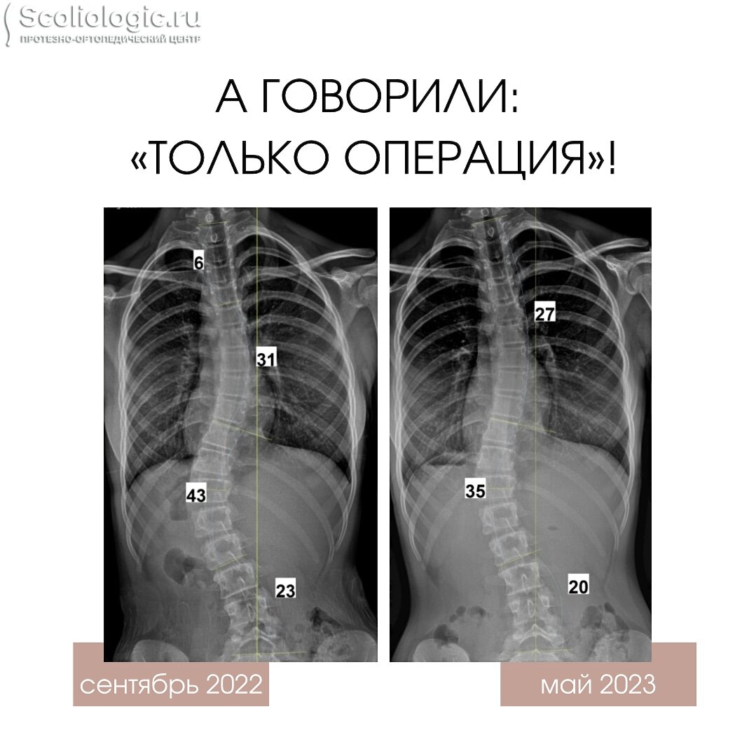 Эта пациентка приехала из Брянска. Лечение корсетом и специфической гимнастикой в родном городе специалисты не предлагали – только операцию. Но родители на этом не остановились, и в сентябре прошлого года записались на прием в Сколиолоджик.ру.