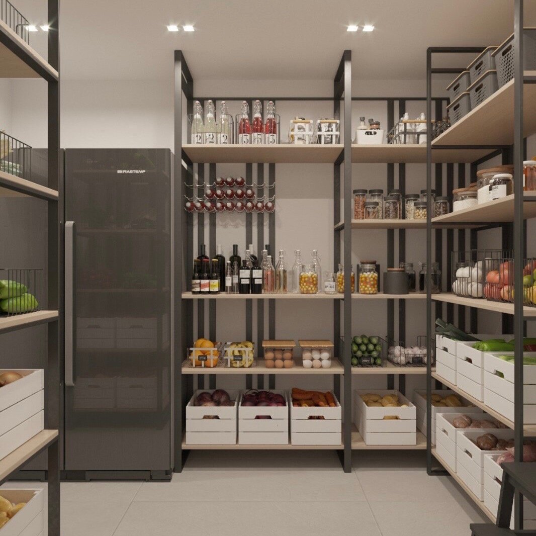 В такой комнате очень удобно хранить запасы фруктов, овощей, зелени и заготовок для большой семьи.