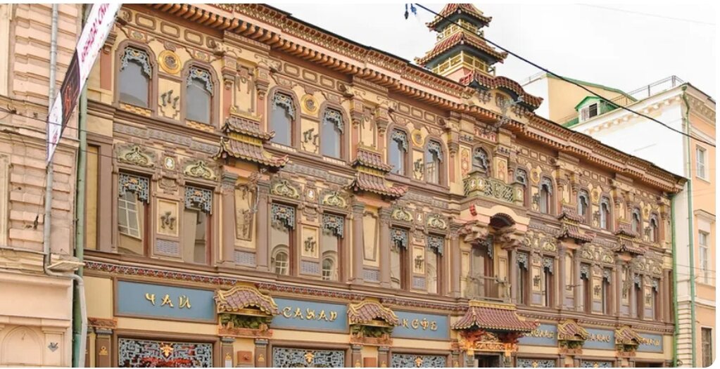 Фасад знаменитого чайного магазина Перловых на Мясницкой улице был украшен в «китайском стиле» в 1896 году по поводу одного неординарного события. В 1893 году в Москве, на Мясницкой улице, появился дом Сергея Перлова — одного из первых чайных магнатов в России. Проект дома разработал Роман Иванович Клейн — известный архитектор, прославившийся виртуозной работой со стилями — мастер эклектики. В одном здании был расположен и жилой дом, и огромный чайный магазин. Фасад знаменитого чайного магазина Перловых на Мясницкой улице был украшен в «китайском стиле» по поводу одного неординарного события. Так его описывает историк П.В. Сытин: «В Москве тогда готовились к коронации Николая II. На коронацию должен был приехать регент молодого китайского императора Ли Хунг-Чанг. С Китаем торговали две московские чайные фирмы: С. Перлова и «В. Перлова с сыном». Стало известно, что Ли Хунг-Чанг остановится в доме чайного торговца Перлова, но какого не знали. С. Перлов ожидал его у себя и поэтому заран