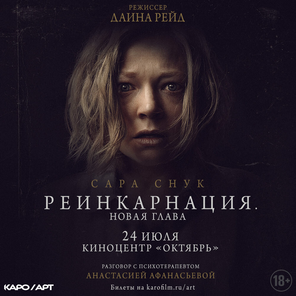 Психологический хоррор-триллер «Реинкарнация. Новая глава» выйдет в российский прокат 27 июля. Кино-Театр.Ру начинает розыгрыш билетов на московскую премьеру картины, которая состоится 24 июля в киноцентре «Октябрь», в рамках проекта КАРО.Арт! После показа – разговор с врачом-психотерапевтом, клиническим директором Mental Health Center Анастасией Афанасьевой. «Реинкарнация. Новая глава» – мистический хоррор-триллер от режиссерки сериалов «Рассказ служанки» и «Чужак» Даины Рейд. В главной роли – звезда сериала «Наследники» Сара Снук. Она играет врача-репродуктолога Сару, которая, замечает странное поведение своей маленькой дочери в её седьмой день рождения. Девочка настаивает, что она не она, а Элис. И все бы ничего, вот только Элис звали сестру Сары, которая исчезла, когда ей тоже было семь лет. Теперь героиня должна столкнуться с призраками прошлого, чтобы докопаться до сути происходящего.