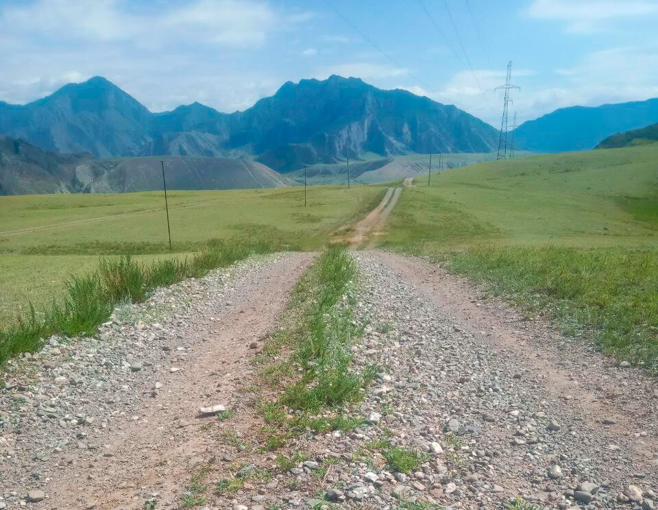 Дорога сейчас выровнялась, идём примерно на высотах 1700-1900 м и через 30 минут заезжаем в районный центр. Здесь предварительно была забронирована гостиница. Всё-таки очень холодные ночи здесь для ночёвок в палатке, да и зарядить всю свою амуницию уже пора настала.