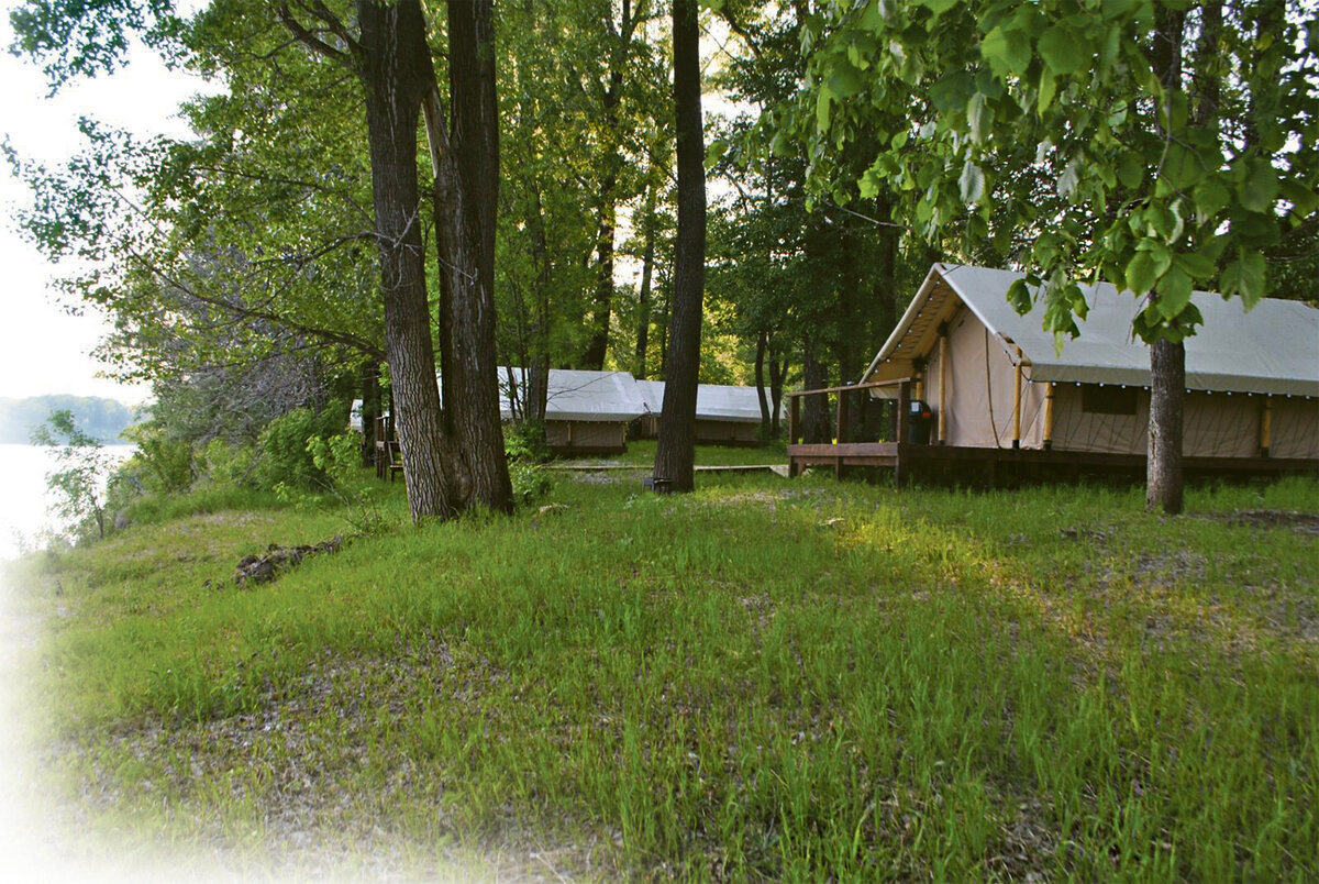 Территория глэмпинга с двух сторон окружена рекой, с городом ее соединяет плотина. Интересный факт: некоторые посетители приплывают к нам на лодках по реке Белой.