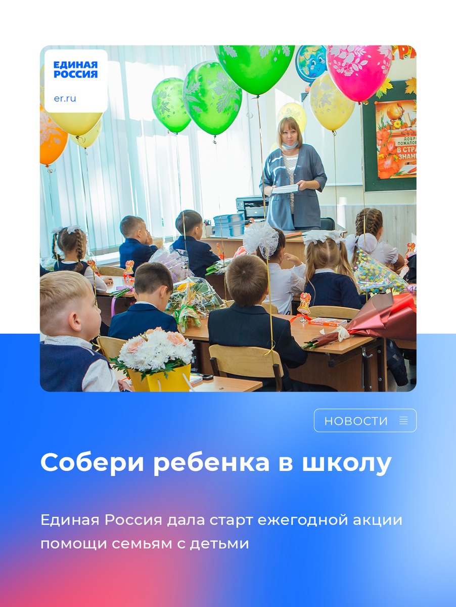 📚 Стартовала ежегодная акция Единой России «Собери ребенка в школу». Она пройдет по всей стране.
