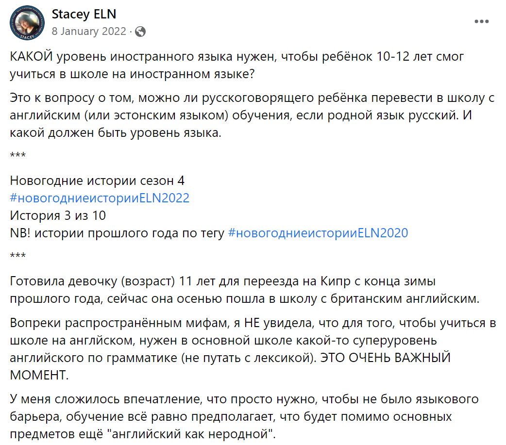 EstELN. Для родителей детей, кому нужен эстонский или английский для того, чтобы на этом языке учиться в школе