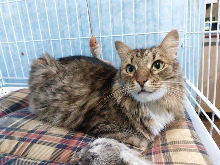 Котика забрала с рынка 3 месяца назад. Мальчик, хотя по началу думали все - девочка, уж очень ласковый. У Умки была рана на спине. Так же котик был очень худ и с него клоками валилась шерсть. Сейчас рана вылечена. Котик набирает шерсть и вес. Анализы все сданы, здоров, от паразитов обработан, кастрирован. Очень умный и ласковый мальчик. Возраст 3-4 года. Лоточек знает. Очень любит гладиться и на ручках сидеть. Умка находится в клинике «кис» метро Говорово, можно приехать к нему познакомиться) Если Умка понравился-звоните: 89035863466 Екатерина.