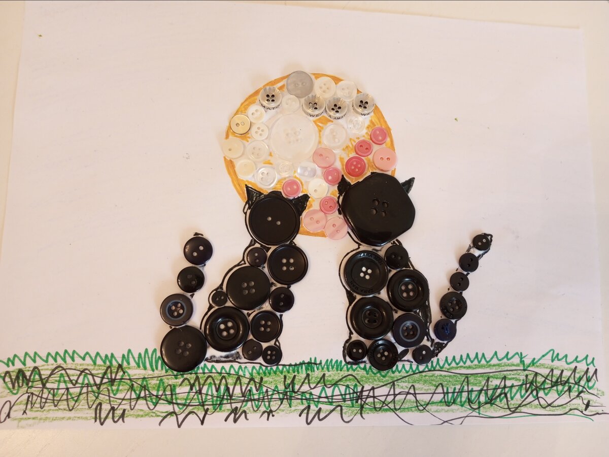Мы с дочками сделали картину с кошками из пуговиц 🐱 Картина с кошками станет отличным украшением детской комнаты и позволяет детям проявить свою фантазию и творческие способности. Для этой поделки вам понадобятся: Большое количество пуговиц разных размеров и цветов; картона или плотной бумаги; клей PVA или клей-карандаш; ножницы; черный маркер или карандаш. Шаг 1. Начните с нарисования очертания кошки на бумаге или распечатайте готовый образец из интернета. Шаг 2. Нанесите клей равномерным слоем на рисунок. Шаг 3. Начинайте приклеивать пуговицы, начиная с крупных и переходя к мелким. Шаг 4. Добавьте прорисовку фломастерами или карандашами. Картина из пуговиц готова! Спасибо, что дочитали и поставили 💗