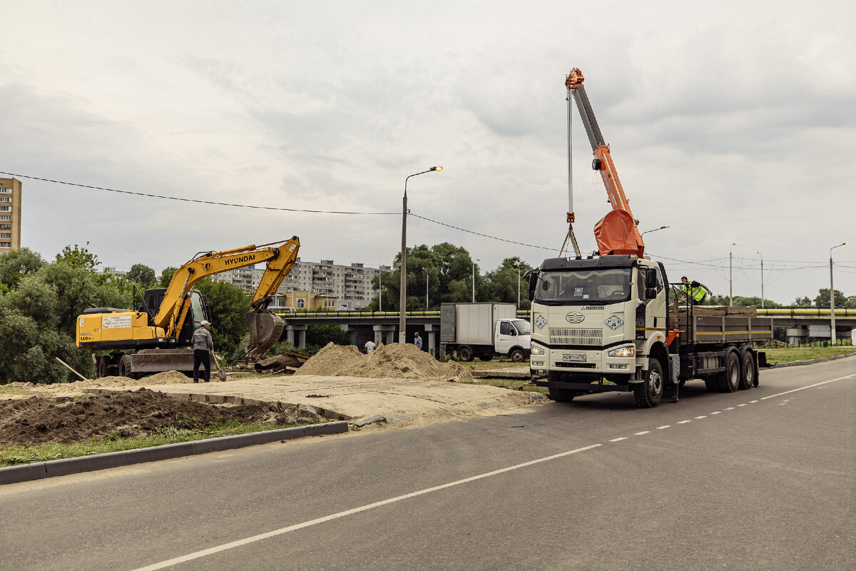 В Орехово-Зуеве начали строить парящую тропу, которая соединит новую набережную и улицу Якова Флиера под мостом. Техника уже работает.