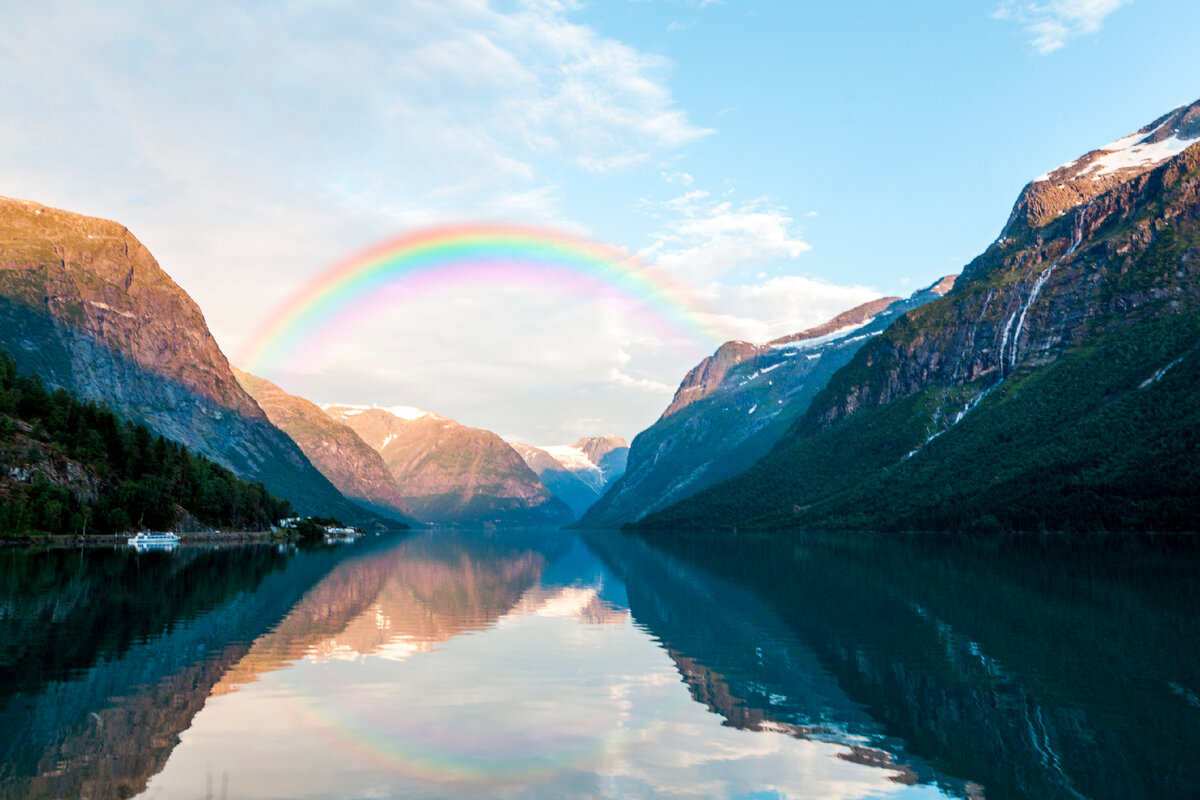 Радуга – это красочное явление, которое возникает при взаимодействии света и воды. Основная особенность радуги заключается в ее способности создавать удивительный цветовой спектр на небесах. Вот как формируется радуга и какие особенности она имеет: Преломление света: Когда солнечные лучи проникают сквозь капли воды в атмосфере, они преломляются. Это происходит потому, что свет меняет свою скорость при переходе из воздуха в воду и обратно. Отражение света: После преломления лучи света отражаются от внутренней поверхности капли воды и выходят наружу. Разложение света: При выходе из капли свет разлагается на различные цвета, такие как красный, оранжевый, желтый, зеленый, голубой, синий и фиолетовый. Этот процесс называется дисперсией. Изгиб лучей: Лучи света, разложенные на цвета, изгибаются внутри капель воды и выходят из них под определенным углом. Формирование окружных дуг: Когда лучи света выходят из капель воды, они создают полукруги или окружные дуги. Основная радуга видна в форме п