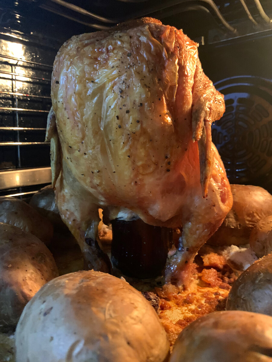 давно забытый, но очень вкусный рецепт на противень стелю фольгу, насыпаю половину пачки соли и выкладываю сырую картошку по кругу беру бутылку светлого пива, отливаю половину стаканчика и ставлю бутылку в центр листа на бутылку с пивом насаживаю курицу, солю и перчу её (если есть желание, то курицу можно ещё обмазать майонезом) отправляю курицу с картошкой га 1,5 - 2 часа в духовку, режим конвекции при 180 градусах. Вкусная картошечка и сочная курица соберут за столом всю семью ❤️ Приятного аппетита Вам и Вашим близким ✨ подписывайтесь на мой канал - будем готовить вместе❤️