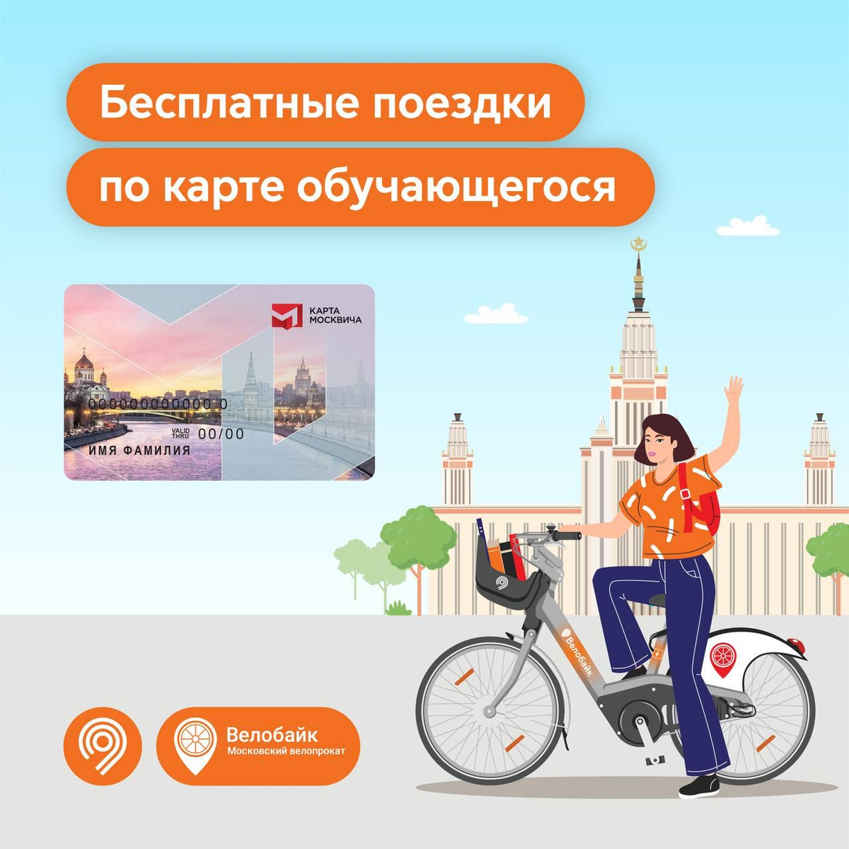 Бесплатные поездки от Велобайка — теперь у владельцев карты москвича для обучающихся.