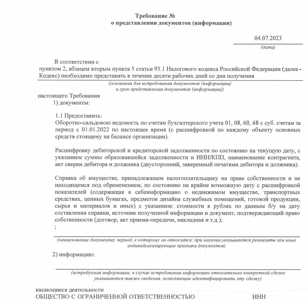 ✔️ Дадим налоговому органу намек на то, что его запрос никаким образом не вмещается в его полномочия по п.2 ст.93.1 НК РФ,