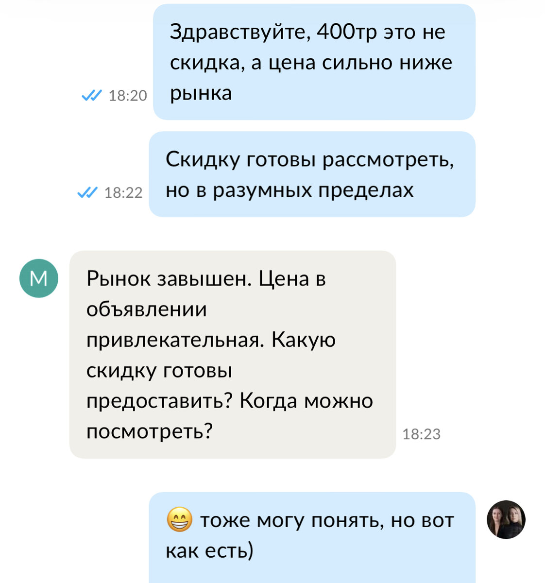 Слышу я каждый божий день, вот тому доказательство 👇🏻 А самое интересное - что я правда понимаю этот тезис со стороны обычных людей. Ровно как и со стороны агентства. Потому что на данный момент сама продаю квартиру, чтобы дальше купить в новом регионе. И правда - на эту переписку достаточно реально было огрызнуться «ну ждите пока рынок будет ниже», но зачем? Если правда человек говорит «дорого», то это означает всего три варианта: При всем этом нужно просто понимать ДЛЯ чего - как инвестиция? Правда дорого, можно найти альтернативу. -для жизни? Правда цена рыночная, дешевле в ближайшие полгода не будет (дешевле на 50-100тр я не беру в расчет) -для аренды? Тоже можно найти дешевле и выгоднее ИТОГ - мы конечно с клиентом договорились на компромисс. При этом вам - нужно понимать все 3 варианта возможных событий при покупке недвижимости😁 и лучше, конечно, иметь честного эксперта рядом в такой момент ✨