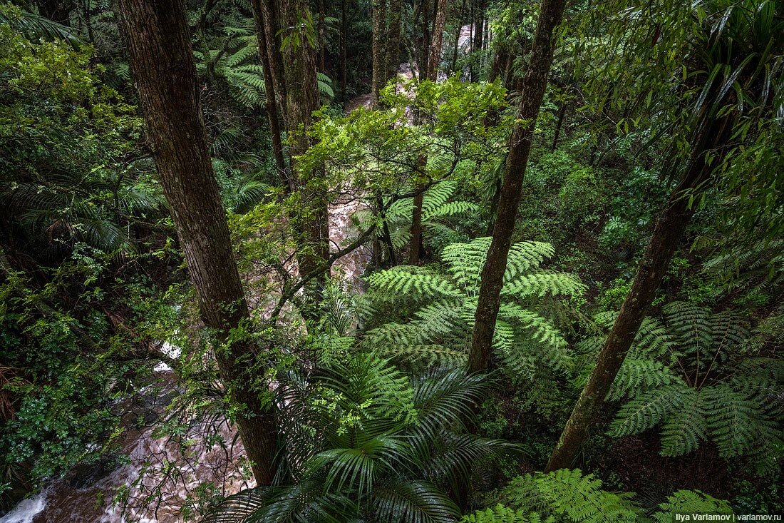43. Вот примерно так могли выглядеть леса, в которых жили динозавры. Деревья каури появились где-то 150 млн лет назад (то есть застали окончание Юрского периода), а папоротники возникли около 400 млн лет назад.