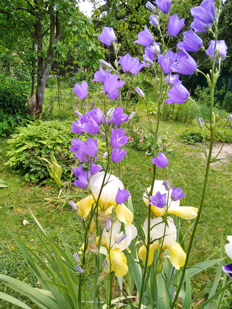 Странно: голубые и лиловые колокольчики у меня живут, а белые не хотят. Вот, например, колокольчик персиколистный - насеялся по всему саду, хожу и выпалываю. А белый два раза уже сажала - процветет и уходит. Широколистный, посаженный когда-то одной былинкой, не только разросся и превратился в огромный куст, но и появился ещё в двух местах. Белый широколистный тоже есть, но он ниже и ведет себя скромнее, где посажен, там и сидит. Этой весной посадила два кустика колокольчика молочноцветкового, ну и ... вы, наверно, уже догадались: голубой зацвёл, а белый нет. Похожая история с Карпатскими колокольчиками - голубой перезимовал, белый исчез. А вот этот колокольчик неизвестного сорта поставил меня в тупик, я не понимаю, куда его посадить. Кустик маленький, цветоносы длинные и лежат на земле. Может, он ампельный и его надо поместить к кашпо? Друзья, если кто-нибудь знает этот сорт, подскажите, пожалуйста!