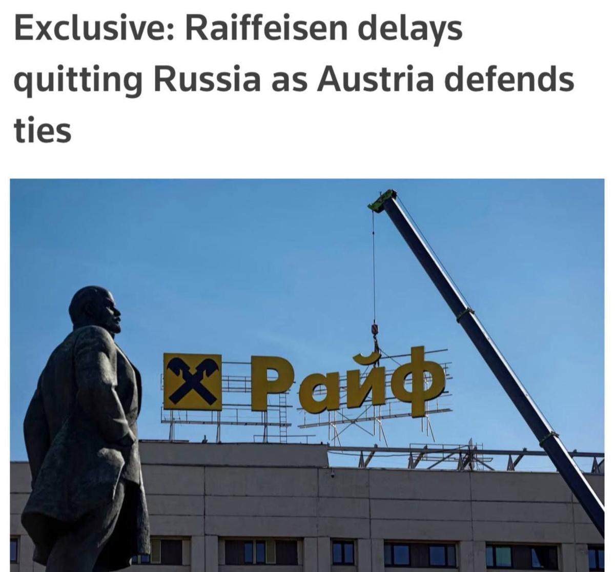 Raiffeisen Bank International откладывает планы по уходу из России. Как сообщает Reuters со ссылкой на источники, это связано с «желанием Австрии сохранить давние связи с РФ». Компания намеревалась отделить российскую «дочку» к сентябрю. Ранее немецкая газета F.A.Z. обратила внимание, что после начала спецоперации более 80% западных компаний продолжают работать в России.