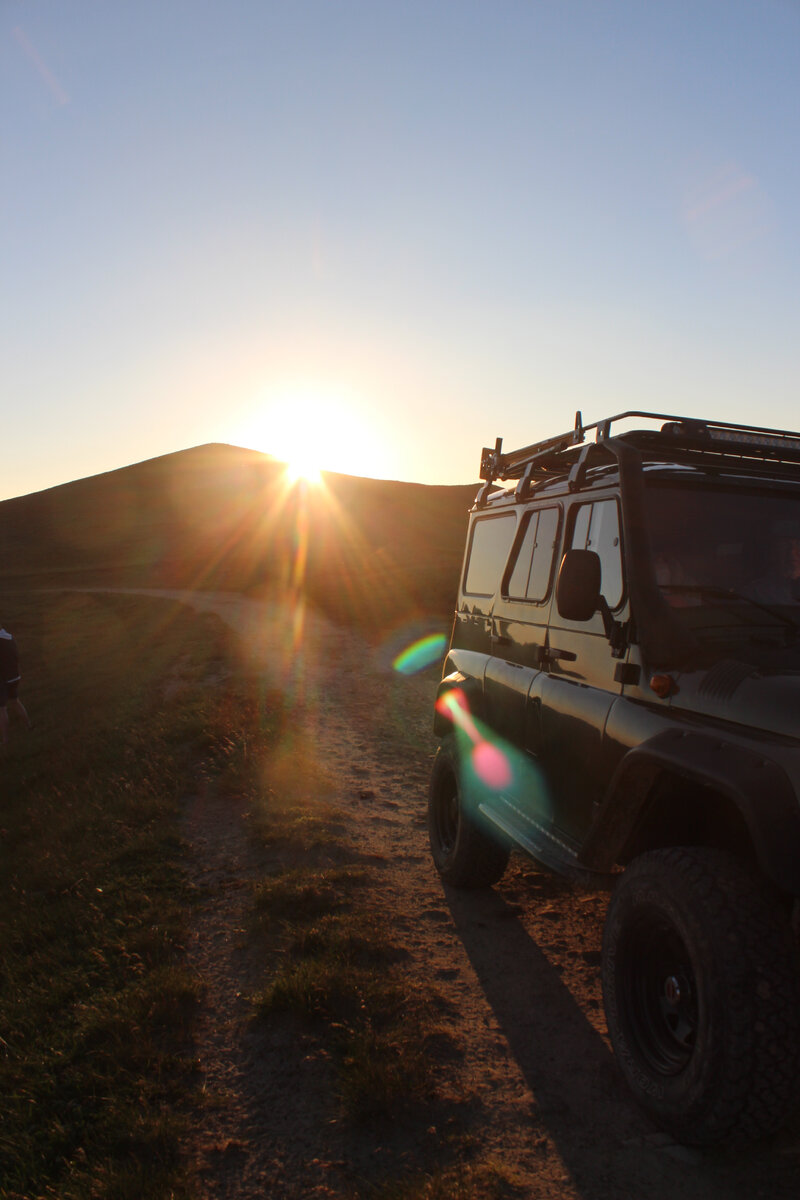 При подготовке к данному путешествию, я поняла, что эти две достопримечательности, про которые я расскажу ниже, лучше смотреть не на своей машине (если она не Нива или УАЗ, конечно), и я оказалась права. Итак, речь пойдет об урочище Джилы-Су и плато большой Бермамыт. Я заранее нашла гида на УАЗе, удовольствие получилось недешевое - за индивидуальный тур для нашей семьи мы заплатили 14000 рублей. Но к сожалению, за эти деньги мы не получили 💯 удовлетворения. А теперь обо всем по-порядку. Анатолия (гида) я нашла через Авито за месяц. За два дня мы подтвердили, что все в силе. План был выехать 6-7 утра, т.к. тур долгий. Накануне вечером гид мне сообщил, что у него что-то с машиной, поэтому будем выезжать в 10 утра. Я напряглась, но он заверил, что все успеем и на Бермамыте будем как раз на закате, чего я и хотела. С утра мы попили водички в Нарзанной галерее и пошли завтракать в симпатичное кафе "Барбарис", где и договорились встретиться с Анатолием. В итоге мы выехали только в начале дв