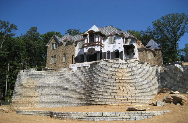 ЗАДАЧА Когда застройщик элитных домов за пределами Московской области, купил "непригодный для строительства" участок с перепадом высот 36,5 метров от задней части участка к передней, он столкнулся с проблемой. Застройщику нужно было найти способ поддержать фундамент большого дома во французском стиле подпорной стеной, которая соответствовала бы высококлассному виду дома. Подпорная стена WALLPARK позволила этому застройщику реализовать свои планы на сложном участке. В результате повысил стоимость поместья в пять раз, т.к. открылись потрясающие виды. РЕШЕНИЕ Застройщик рассматривал возможность возведения монолитной стены высотой 9,1 метра, покрытой облицовкой из камня, но счел это слишком дорогим проектом. Он познакомился с нашими гравитационными блоками для подпорных стен на нашем сайте WALLPARK и ему понравился естественный вид и эффектные тени текстуры булыжника. Мы показали ему реализованный объект-стены Савино-Сторожевского монастыря. Этот объект его очень впечатлил. Застройщику так