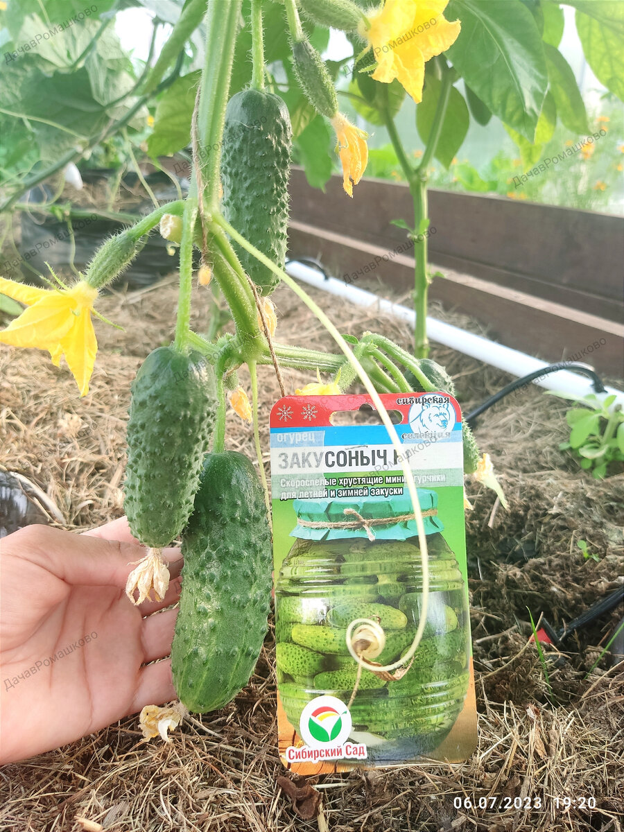 Впервые выращиваю этот огурчик. Просто не смогла пройти мимо него в магазине. Не из-за названия, а из-за баночки на картинке. Вы только посмотрите как аппетитно они уложены На фото огурчик, тот что побольше, уже можно сказать переросток ) А вот тот что рядом с ним - то что надо! Вы представляете, как будет вкусно хрустеть этими солёными малышами? Пишу, а у самой слюнки текут 😋 Мы всей семьёй очень любим солёные огурчики. И маринованные, и всякие салаты на зиму из них. Свежий салат из битых огурцов и даже жареные с мясом. Но сейчас не об этом, отвлеклась ) Вернёмся к Закусонычу. Посмотрите на его урожайность Вот он в разрезе Для чистоты эксперимента, сравнила его с другим огурчиком (Нейлина F1 справа, Закусоныч - слева) И самое главное - вкус! Нежный, очень сочный, сладковатый 👍🏻 Нам очень понравился! Шкурка плотная, но не жёсткая. Идеально для засолки, но и свежий в салат тоже супер. Да и так похрустеть. В общем Закусоныч теперь точно с нами на долго 🥒