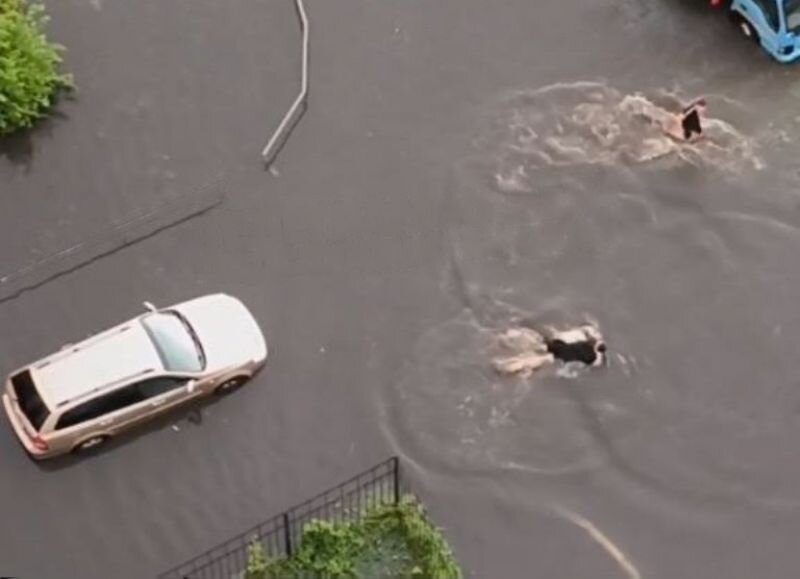 Жители Брянска устроили заплыв по улицам города после мощного ливня