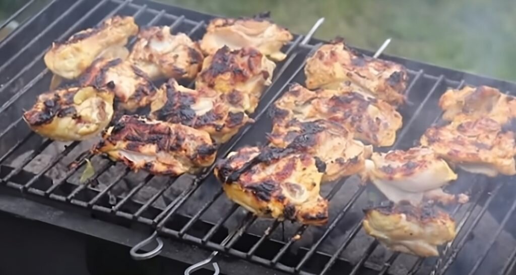 Вкус шашлыка из мяса куриных бедер во многом зависит от смеси ингредиентов в маринаде. Каждый из них имеет свою функцию, помогая разнообразить мясо птицы. Предлагаем приготовить куриные бедра на мангале, вымоченные в кефире. Этот плотный кисломолочный продукт хорошо обволакивает мясо, умеренно его размягчает, сохраняя сок внутри. Использовать можно кефир любой, но наиболее вкусным маринад получается из 3,2% жирности. Необходимые ингредиенты: Рецепт приготовления: Такой шашлык отлично сочетается с салатами, гарнирами и подаются с любимым соусом. Приятного аппетита! Ждем Ваши оценки и комментарии!)))) Еще больше вкусных рецептов Вы найдете на сайте Блюда на мангале.