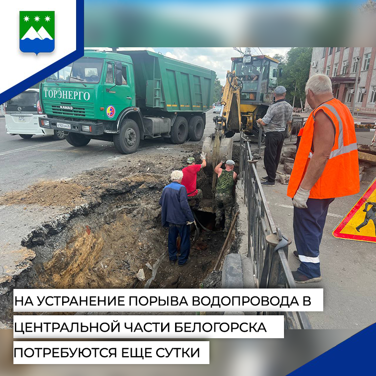 В центральной части Белогорска идут работы по устранению течи водопровода. Накануне «Горэнерго» приостановило подачу горячей воды в несколько многоквартирных домов. Участок в районе ул. Гагарина, 17 вскрыт в первой половине дня. В ремонтно-восстановительных работах задействована аварийная бригада и экскаватор.