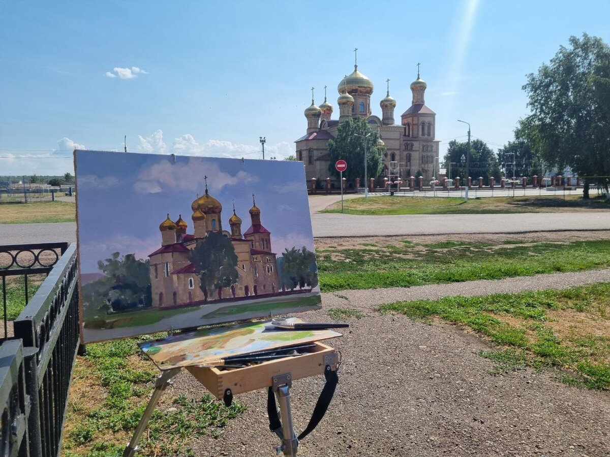 Специально для этого он прибыл в наш поселок из Уфы. По приглашению Чистопольской епархии в Татарстане проходит съезд членов Союза художников. Около 15 человек приехали с разных регионов России в нашу республику, чтобы запечатлеть величие храмов и церквей. Известный художник Вакиль Шайхетдинов, являющийся членом Союза художников СССР, России, Башкортастана и Татарстана, решил написать картину с изображением алексеевского храма. По словам художника, ему очень приглянулся именно храм Воскресения Христова. Он не первый раз участвуют в различных съездах. 2 года назад он уже был в Татарстане и писал картину с изображением чистопольского храма. Сейчас решил написать наш. От каждого художника Чистопольской епархии будет передано в дар по одной понравившейся картине.