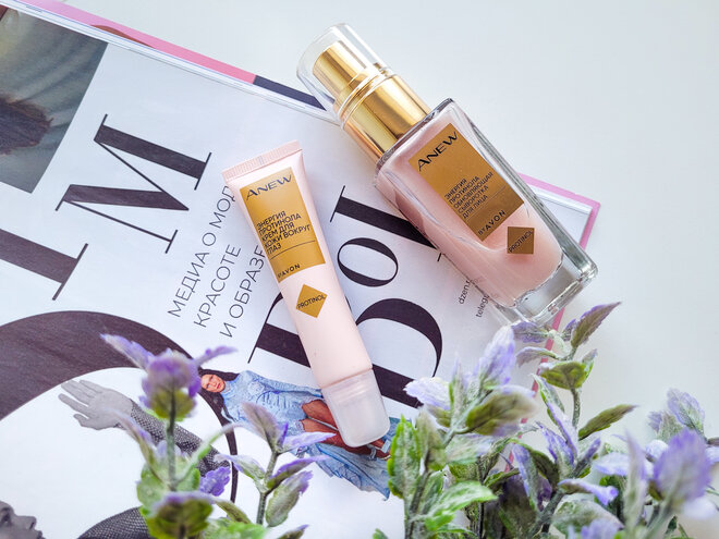 Здравствуйте!) Недавно я получила новую рассылку от Avon, приуроченную к запуску нового крема для зоны вокруг глаз «Protinol», в которую вошли такие продукты как обновляющая сыворотка «Энергия Протинола» (её я уже пробовала пару лет назад) и собственно, сама новинка — крем для зоны вокруг глаз. Я всё попробовала и буду рада поделиться своими впечатлениями) Начну с Восстанавливающей Сыворотки для лица Avon Anew «Энергия протинола» Очень приятное оформление: увесистый стеклянный флакон с помповым дозатором, через который видно перламутровую текстуру сыворотки. Состав можно охарактеризовать как скудный, парочка увлажнителей (мочевина, глицерин), ниацинамид, и всё… на этом известные мне активные компоненты закончились. Текстура сыворотки жидкая, скользкая, с содержанием мерцающих частичек. После впитывания в кожу оставляет небольшую липкость. Отдушка с цветочными нотками, не яркая. Применение Флакон этой сыворотки был у меня 2 или 3 года назад, и я очень долго использовала её как базу под