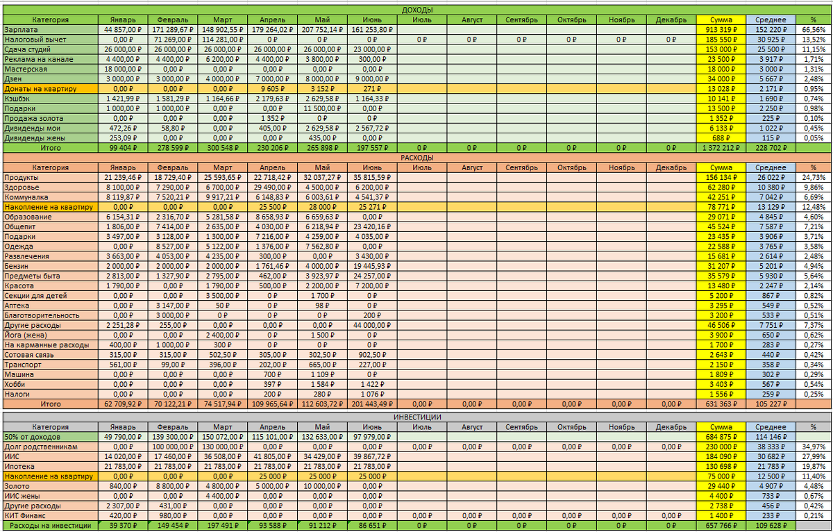 Приветствую вас на моем канале. Уже почти середина июля, а я только добрался до анализа нашего семейного бюджета. Напомню, что с 1 января я стал записывать все расходы и доходы нашей семьи. И с периодичностью раз в месяц я публикую свои отчеты на этом канале.