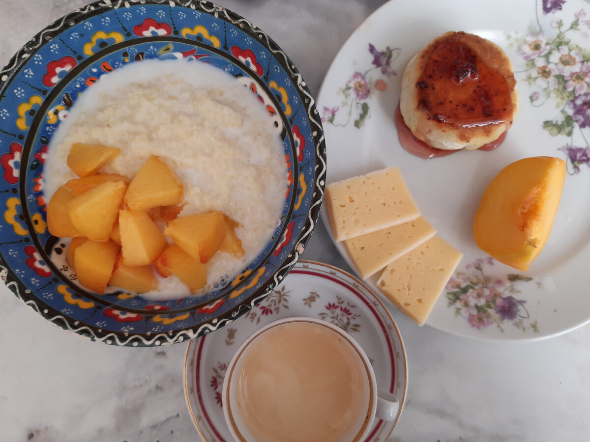 В августе продолжаем питаться экономно и вкусно на небольшую сумму. О запасах на начало месяца и расчете суммы на питание можно узнать ЗДЕСЬ Покупка продуктов №1 -ОЗОН, Глобус, Лента, Метро, Вкусвилл, Черкизово, Дикси, Крым Все рецепты можно найти в КАТАЛОГЕ РЕЦЕПТОВ На завтрак сварила молочную пшенную кашу в мультиварке. Как обычно, все налила-засыпала, ушла гулять с собакой. Вернулись - и кашу уже можно раскладывать по тарелкам. Также сырники к чаю, персики, сыр Тильзитер, шоколадка, конечно. И чашечка кофе. Между завтраком и обедом закрыла порцию борща в банке. Он у нас в этом году раньше других заготовок закончился. Надо минимум две порции закрывать. На обед - пицца. Была в холодильнике моцарелла (из Вкусвилла), была нарезка колбасы для пиццы сальчичон (из Черкизовского магазина), тесто делала вот это. Соус томатный сварил сын (немного еще и заморозили соуса, вкусный!) Получилось 2 пиццы размером на противень каждая. Почти все и съели сразу (отложила только 2 маленьких кусочка н