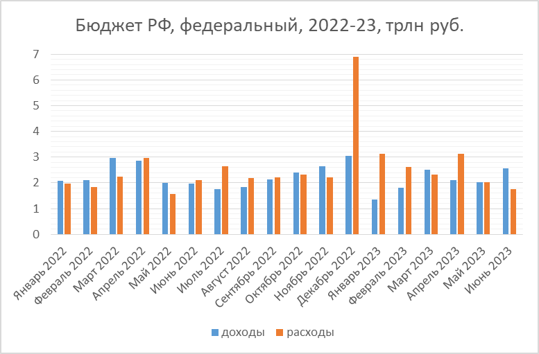 Интересно, что в июне расходы снизились даже номинально. Инфляция с прошлого июня, конечно, не такая большая, как с начала 2022-го, но она всё равно положительная, так что это снижение не только номинальное, но и реальное.