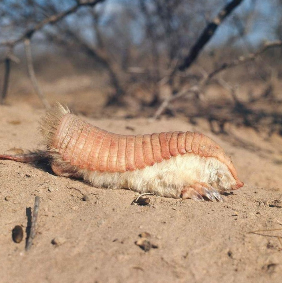 Самый малочисленный вид семейства броненосцев, в размере достигает не более 12 сантиметров. Обитает в сухих лугах или плоских песчаных участках. Плащеносный броненосец (лат. Chlamyphorus truncatus) или аргентинский щитоносец, также называемый «пичисиего». Встречается в центральной части Аргентины, где населяет сухие луга и плоские песчаные участки, поросшие кактусами и колючими кустарниками. Это самый мелкий представитель семейства броненосцовые. Длина его тела составляет от 9 до 11 см, а вес не больше 120 г. Плащеносный броненосец вырастает до 90—115 мм без учёта длины хвоста, отличается бледно-розовой или розовой окраской. При испуге он способен за несколько секунд полностью закопаться в землю. При этом другие виды достигают полутора метров. У зверька удлиненный хвост, который ему сложно поднимать из-за большого веса, поэтому он волочится по земле. У него также особое строение мордочки, которая заканчивается крохотным острым носом. Глаза и уши имеют небольшой размер. Кроме этого