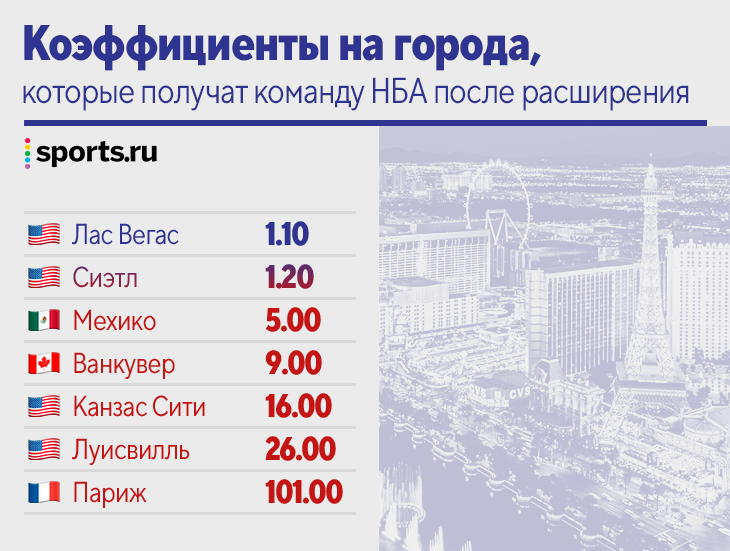 Американские букмекеры уже выкатили список городов, которые, вероятнее всего, получат команду НБА.