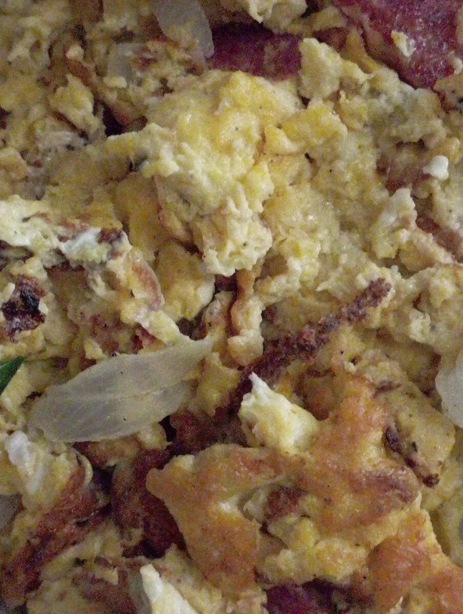 Омлет с колбасой, зеленыи луком