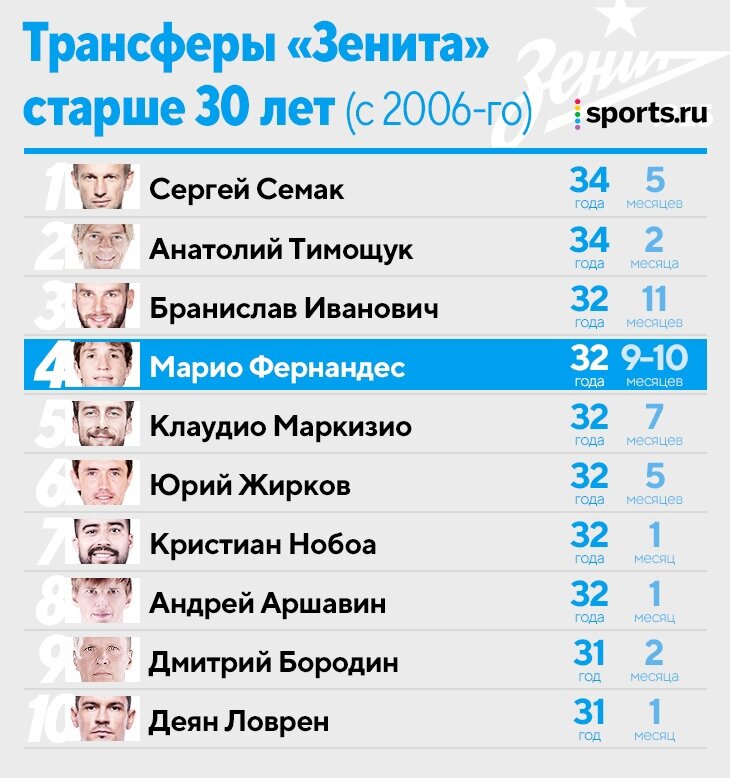 Марио – среди самых возрастных трансферов «Зенита». С 2006-го только три новичка были старше