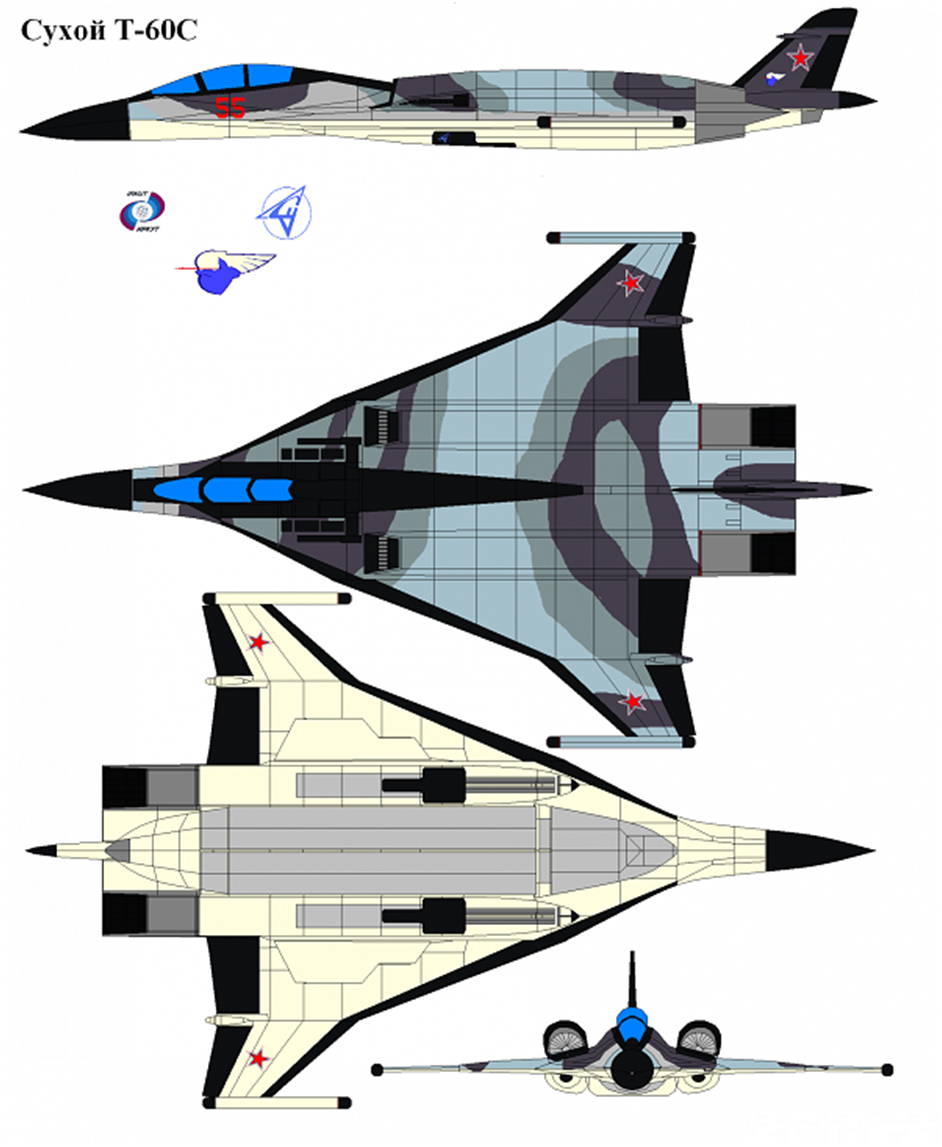 Однако на самом деле это картинка – одна из компоновочных схем проекта 1983 года под названием «Большая модификация Су-24», но в ОКБ Сухого тогда сменилось руководство, и новым фронтовым бомбардировщиком стал «утконос» Су-34. А С-60 действительно был, и всё, что написано в части 4 есть истина, но выглядел он немного по-другому. Где-то так: