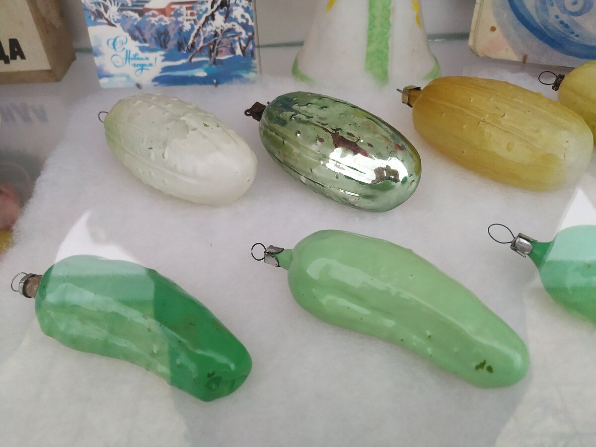 Из детства моего мужа почти не сохранилось игрушек, кроме ёлочных украшений. И эту, довольно большую коллекцию, он в молодости пополнял уже сам. А поскольку он был, как сейчас говорят, креативным, то и пополнял очень нетривиально. Каждый год он наряжал тематическую ёлку. Или одни шары, или одни фигурки, или одни фрукты и т.п. Но самая "креативная" ёлка получилось из малосольных и солёных огурцов, которые он специально собирал несколько лет. И сейчас их у нас больше 20 штук...