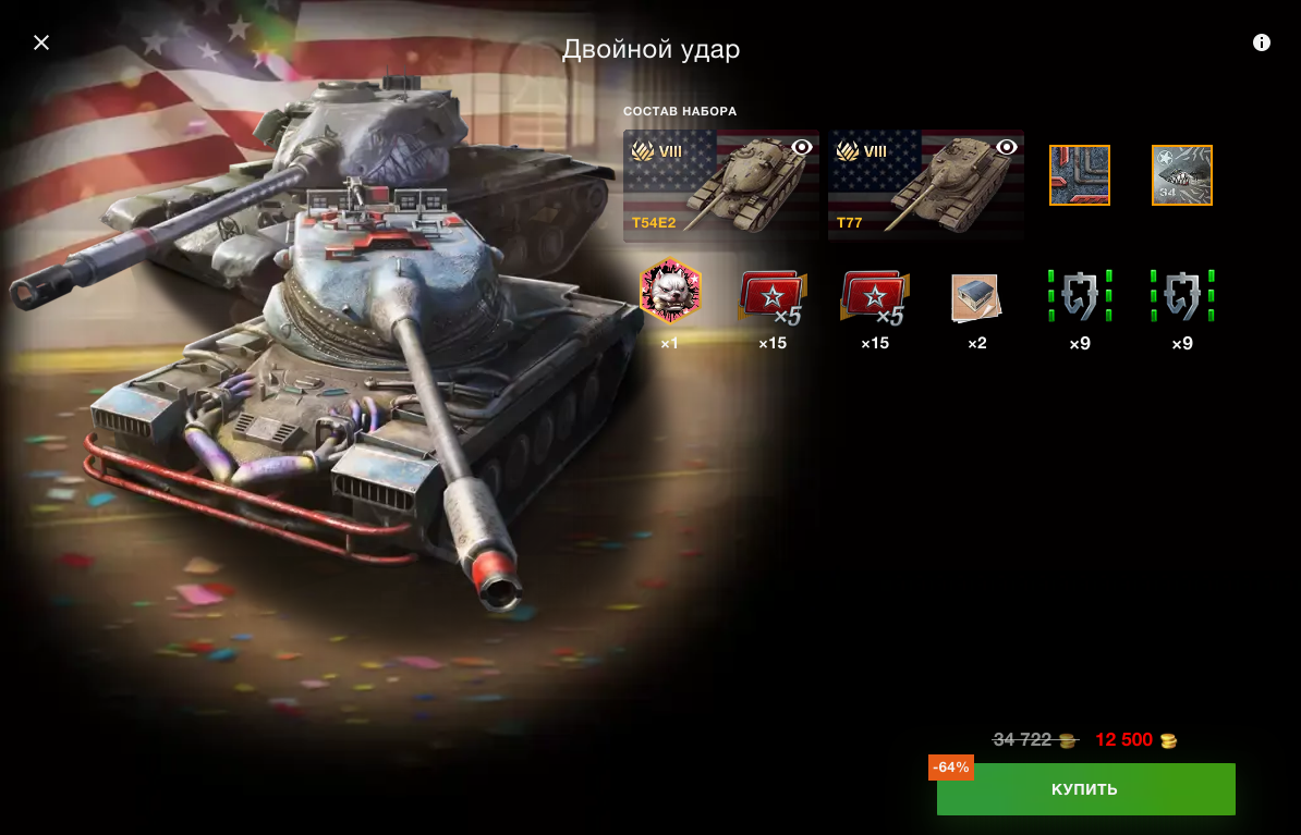 Всех с днем дня! В прем-магазине появился очередной набор, и в этот раз я буду буквально кричать вам, что такой шанс лучше не упускать. Об таком же наборе я писал 15 апреля. Набор на тот момент стоил 17 500 золота. И уже тогда я советовал купить его. Но давайте пробежимся по танкам еще раз. Т54Е2 Акула - это, не побоюсь этого слова, самый сбалансированный и универсальный тяжелый танк игры. Он раскроется в любых руках. Неважно, новичок вы или прожженный фиолетовый бодибилдер. Т54Е2 достаточно подвижный, при этом может похвастаться очень крепкой броней. Он отлично чувствует себя на рельефе, но и в городе не будет страдать. И даже его орудие нельзя назвать плохим. Оно имеет среднюю альфу и средний ДПМ, среднее пробитие и средний комфорт стрельбы (хотя иногда очень капризничает). Краткий итог Я всегда говорил и буду говорить, что акула - очень хороший прем. И 8500 золота для него - нормальная цена. Т77 Машина не универсальная, но очень интересная. По визуалу - типичный "честный" Т57 Heavy
